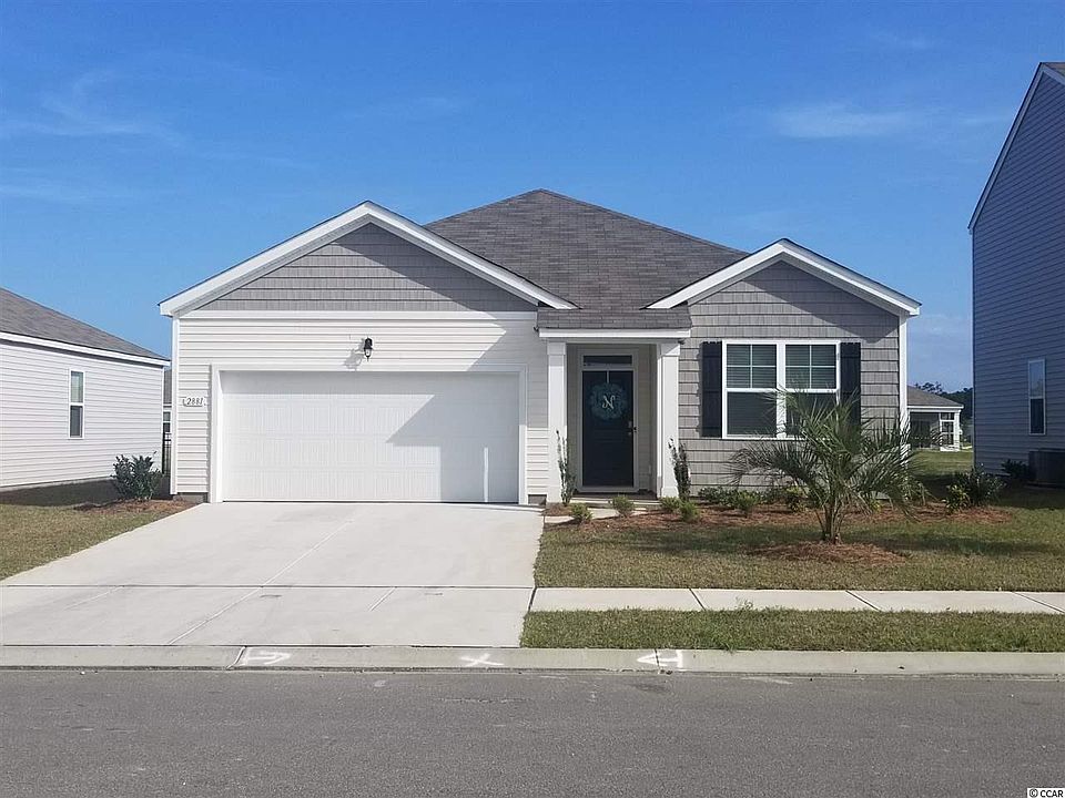 This Aria plan has a great open design. Kitchen features stainless appliances (including refrigerator) and 36" white cabinets with pendant lights over the gourmet granite counter height island, all overlooking the spacious Living Room and Dining Room - great for entertaining! Low maintenance Luxury Vinyl Wood Plank floors throughout the living area, bathrooms and laundry room. From the Dining Room, sliding glass doors take you to a 12 x 8 ft. covered porch. Owner’s suite offers a large walk-in closet and bath with 5 ft. shower, double vanity and sinks. Will be completed in NOVEMBER 2018 Washer, dryer and garage door opener included! Be the first to live in Meridian at Market Common. The Meridian will offer 200-300 new homes, featuring 10 floor plans both ranch and two story homes. We are the price-leader for single family homes in Market Common! Our home owners will enjoy a gracious pool, hot tub, air conditioned pickle ball court/meeting space, walking trails and a short golf cart ride to the beach. Live like you're on vacation! Photos of home are of a model home of same floor plan in another community and are for presentation only.