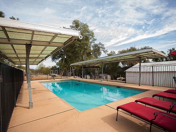 Excellent family home with 6 bedrooms and an extra room off of the deck over looking the built in pool and playground. Perfect acreage for animals with a two stall barn and a huge chicken coop. Plenty of room for all of the toys in the attached 4 car garage and three stall shop. Newly remodeled gourmet kitchen with quartz counters, maple cabinets and built in Thermador professional package appliances. 230 square foot media room. New HE heating and air system and new HE tankless water heater. Owned 1000 gallon propane tank. Five very useful cross fenced acres with many oak trees, fenced garden and fenced fruit and nut orchard.