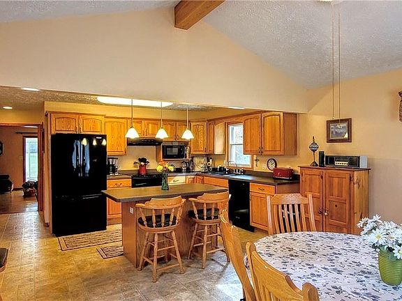 Viewing this home will be like a walk in the park. As you pull in, you will see a beautiful "pole barn" garage with an upstairs loft. This 20X32 barn was built in the 90's but has a newer metal roof to give that country charm. With electricity throughout, the upstairs would make an amazing art studio, home gym, or hobby space. The deep bays with high doors are great for extra storage space and taller vehicles or recreational equipment. Entering the home you will be in the open country kitchen/dining area. A great concept for entertaining or large holiday dinners with extra seating at the island. Lots of windows offer a bright happy space. The highlight of this cozy home is a huge sunroom with vaulted ceilings and skylights. The wrap around windows give amazing views of the expansive 2 acre property and backwoods. If you would rather snuggle in you have the option to relax in the large family room in front of the freestanding wood/coal stove. The back shed is full of firewood for those cold winter nights. Don't let this one get away, Updates include but not limited to a new central air conditioner, recently remodeled kitchen with newer appliances and comfort mechanics like a water softener.