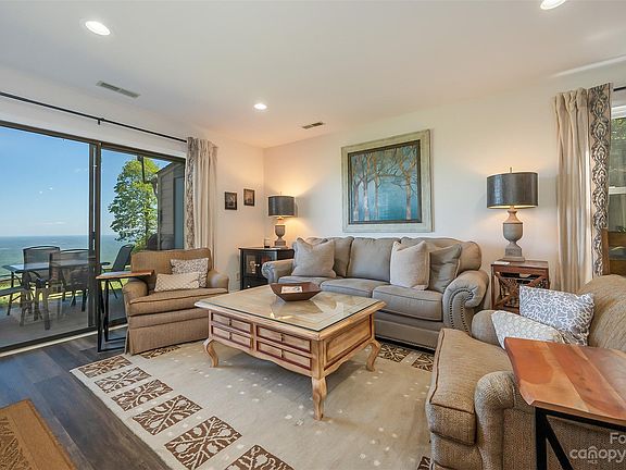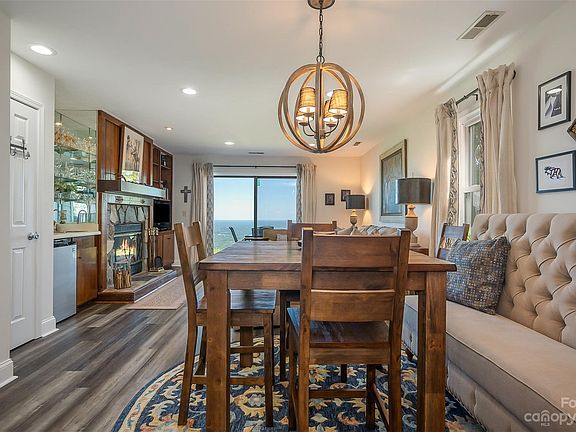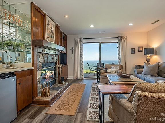 Live on top of the clouds! This two bedroom, two bath, one floor end unit has been beautifully redone. A stainless steel farmhouse sink, travertine tile, stylish light fixtures and floating shelves are just part of the kitchen updates. New flooring throughout. Snuggle by the fireplace after fixing a cocktail from the wet bar. There's not a better spot to have morning coffee than sitting on the patio looking over these amazing views that go on for miles. Furnishing negotiable with acceptable offer. Pets are not allowed unless you legal paperwork for service/companion. HOA fees cover Water, trash service, lawn maintenance, pest control, septic and insurance. No short term rentals although long term is allowed. Don't miss this special opportunity to live on top of the mountain!