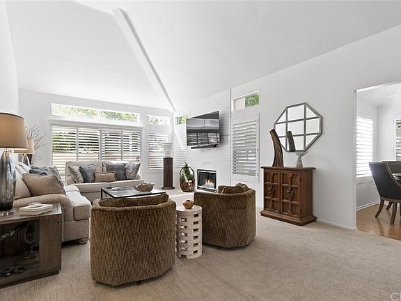 One of our faves and soon to be yours within the 55+ Palmia community! Single Level, Two Bedroom PLUS Den/Office & Two Full Baths. This one is a Charmer with a Delightful Location and Fabulous Floor Plan. Entry way leads to a Great Room with Vaulted Ceilings and an Updated floor to ceiling Fireplace surround with fireplace glass. Office/Den is toward front of home with Bedrooms on opposite wings. Freshly painted and newer carpet in 2019, home also features Plantation Shutters and High End Ceiling Fans. As an added bonus, Three Sony Televisions already mounted will be included. Kitchen has a charming Nook for dining, Soft close Cabinetry, Light and Bright with several Windows overlooking the Greenbelt. Decorator Wall and Mirrored Closet doors in Secondary Bedroom. Master has Patio Access and Ensuite bath - Walk in Closet, Dual Vanities and Shower. The Yard features a Patio Cover, Gas Barbeque (new in 2019), Area's for planting and enjoying the outdoors. Patio Wall was built higher for added privacy and there is a gate direct to Greenbelt if so choose. Garage has an extended area housing the Washer/Dryer, Built in Cabinetry, Epoxied floor and "clean as a whistle". Home has also been re-piped. Residents enjoy the Palmia Amenities including Clubhouse, Fitness Center, 3 Swimming Pools/Jacuzzi's, 18-hole Putting Green, Tennis Courts, Bocce, Shuffleboard +++. Mission Viejo Lake is also part of the Home Owners Association Amenities. This one is Special!