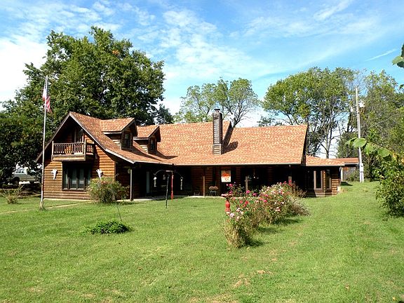 Country Living with all the perks is what you will find in this log home, nestled on 60 acres m/l on a dead end road. Enjoy peacefulness while setting on the covered front porch before entering open floor plan, custom kitchen with double ovens, granite counter top, and cathedral ceiling with skylights. Loft area overlooks rustic living room including wood stove with rock wall accents, builtin, and planked walls and ceiling. Spa like bathrooms have walk in tiled showers and master with garden tub. 60 acres of land is fenced for livestock and bordered with timber for the sportsman. All this plus a 36 x 30 detached shop/garage.