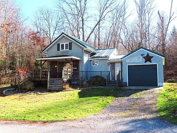 Upon entering this home, you are transfixed on the view from the large windows overlooking the stream in your back yard. This property sits on over 14+ acres with a beautiful country setting and an open floor plan. The seating area on the deck is perfect for outdoor gatherings or simply enjoying a peaceful moment of solitude. The covered porch is a bonus for those rainy days. Use this as a weekend getaway, Airbnb or remodel as your personal dream home. The possibilities are endless.