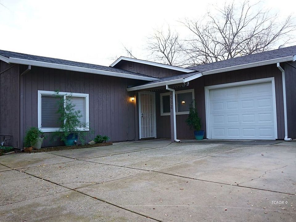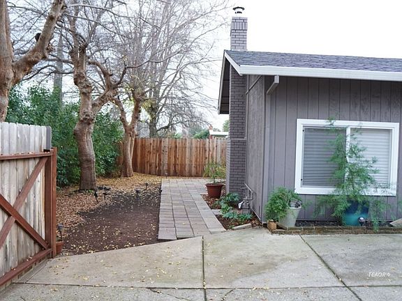 Fenced front yard with front yard privacy. Renovated 2 years ago with new roof, dual vinyl pane windows, granite tile kitchen counters and bar. Rich dark wood laminate flooring in open living, dining, kitchen, hallway & bathroom. Large counter bar. Cozy wood burning fireplace with upgraded chimney repair. White cabinets, stainless steel dishwasher, gas range/oven, refrigerator, & stackable washer/dryer. Vinyl sliding door to backyard patio area. Big back yard with room for garden. Full bathroom with slate tile tub/shower surround. Single car garage with extra storage area. Stacked washer and dryer laundry compartment in hallway.