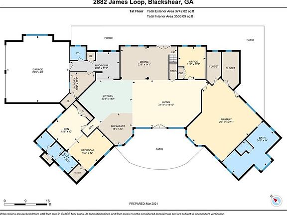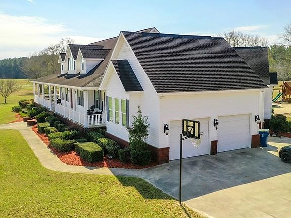 With approximately 4,741 heated sq ft, this massive and magnificent 5-bedroom, 3 1/2 bath home situated on a 4-acre lot offers plenty of privacy, luxury living, and beautiful views. From the wraparound front porch, you will enter the home through french doors which lead to a grand foyer area. To your left, you will see an elegant wooden staircase leading to the 2nd floor where you will find two spacious bedrooms and a full bath. Back downstairs, the foyer is part of an open concept floor plan which also includes a formal dining area with stunning hardwood floors, a large family room offering lots of natural light, and a kitchen that is any chef's dream. Off of the family room is an office/bedroom and a huge master suite boasting a luxurious 2-person sauna and two walk-in closets. Through the kitchen is a second downstairs bedroom which includes a den/sitting area and it's own private bath. French doors in the family room lead to the back patio which overlooks the in-ground pool.