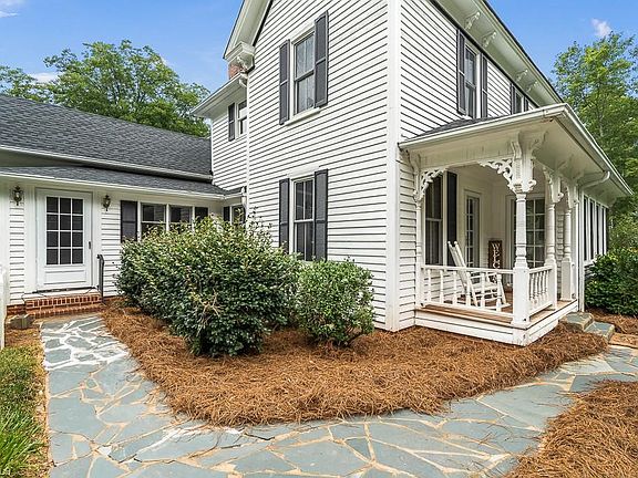 FINAL OFFERS DUE FRIDAY 7/29 @ 5PM! True 1880 farmhouse in prestigous location on level 3.58 acre tract with Guest House! Gorgeous hardwood flooring, 10' ceilings, new LVT flooring in kitchen, main floor bathroom & breakfast room. SIX fireplaces! Formal dining & living areas, including high-end wood paneled den. Home is conveniently located, yet set off the road in the most picturesque setting. Character abounds with historic molding throughout & a stunning curved staircase in the center of the home! Kitchen is large with granite counters & Jenn-Air downdraft range. Great laundry/mudroom at the back door. Spacious landing upstairs between bedrooms, and exterior balcony! Covered rocking chair front porch with gorgeous stone, large deck overlooking fenced back yard, brand new roof in 2021. Spacious guest house with living area, kitchenette & full bath, features a single garage, & additional tandem double garage for storage. Rare opportunity to own one of Randolph County's iconic homes.