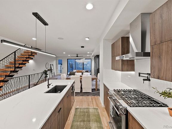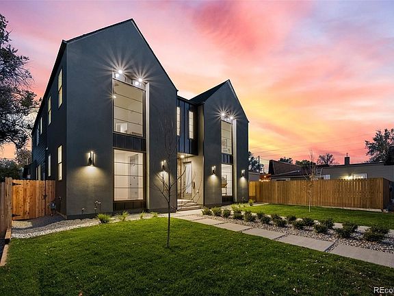 Bold. Modern. Cool. 4 bed/4 bath new construction 1/2 duplex in super hot south Broadway unlike anything SoBo has seen yet. Luxury custom finishes & details throughout. Thoughtful design. Higher quality custom finishes. Modern aesthetic. Designer details & upgrades. Kitchen w/soft-close cabinetry by Showplace EVO, big eat-in waterfall island, huge pantry, $600 pot filler, under cab + under-island lighting, custom oak shelving, $900 71" linear LED suspension light, in-ceiling speakers & deluxe Kitchen Aid appliances incl convection gas range & $1600 top-loading drawer-style microwave. Huge living room w/linear gas fireplace, designer (from Spain) tile surround, 12 ft Marvin Integrity (wood interior/composite exterior) sliding door. Huge master w/hardwoods, 12'8" tall vaulted ceilings, walk in closet, custom oak shelves, ultra-quiet Modern Forms smart fan (integrates w/smart devices) & in ceiling speakers. Huge ensuite master bath w/ vaulted ceilings, soaker tub, huge double shower & Porcelanosa tile from Spain. Andersen fibrex composite windows (2x the strength of vinyl). Hardwoods also in hallway. Custom abstract iron railings & monorail staircase w/floating wood treads. Home office w/custom glass office door, oak shelving & tons of natural light. Finished basement w/big rec room. 2 beds upstairs w/vaulted ceilings. 4th bedroom in basement w/huge walk in closet. Switched patio outlet in soffit for party lights. Pre-wired for audio in living room (5.1 surround), basement (7.1 surround), master bedroom (ceiling speakers installed), kitchen (ceiling speakers installed) w/receiver included. Central networking panel. LED lighting in entire home for energy efficiency. High efficiency furnace & H20 heater. Nest thermostat. Central A/C. Custom stainless mailbox & address #s. 2 car garage w/wifi/smart opener. Large private back yard w/patio. No HOA. Party wall agreement in place. Buyer to verify sq ft & taxes (not yet assessed). This one screams luxury & custom!