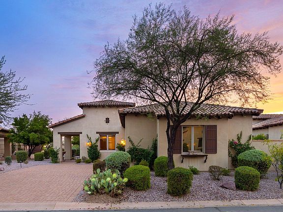 Experience the ultimate lock-and-leave lifestyle in this stunning TURNKEY villa in the prestigious Superstition Mountain Golf Club community. This well-cared-for, light-filled home, is situated on an elevated lot in First Water Village. Featuring high end finishes in a spacious, split 3 bed/3 ba floorplan with open Great Room/Dining area, this perfect vacation home is just a short walk from the Community's Clubhouse and Fitness Center. The gourmet kitchen features Viking appliances including stainless refrigerator and 6 burner gas range, custom cabinetry and island w/seating. Private Primary Suite with access to rear patio and luxurious bath. 2 guest suites with ensuite baths - 1 with side patio access and the other with built-in desk and Murphy Bed. Spacious Laundry with Washer/Dryer. Side entry 2 car garage with epoxy floors and ample cabinetry for storage. Rear patio with built-in BBQ and RARE in ground Heated Spa to enjoy the serene Arizona nights, views to gorgeous sunsets and the twinkle of city lights. Ready for immediate move-in, the home is being sold furnished and turn-key down to the linens and dishware! Residents can enjoy a range of amenities, including the fitness center, tennis and pickleball courts, heated lap pool, and two Jack Nicklaus golf courses (club membership available under separate agreement). 24-hour manned gate security and roving patrol ensuring peace of mind. High-end features with a prime location in a professionally managed, private community, this home is a true gem!