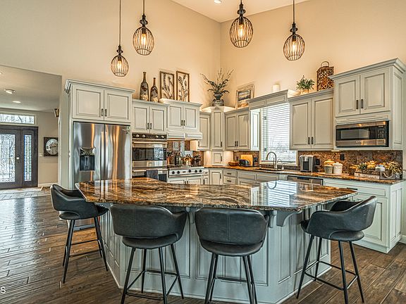 HUGE REDUCTION ....Now $789,900! LUXURY LIVING in this STUNNING and ELEGANT custom built slab on grade home with nearly 3000 sq ft nestled on a beautiful 2.07 acre lot with many UPGRADES and improvements. LOCATION LOCATION LOCATION this home is located minutes from city limits, near Fox Island boat ramp, and Riverwood golf course. The spacious floor plan features a large gourmet kitchen with stainless steel double ovens, gas cook top, huge granite island, vaulted ceiling, open floor plan into the dining and great rooms.A lovely and bright 15 X 25 all seasons sunroom addition with gas fireplace & heated tile floors, boosts of warmth year round surrounded by an abundance of windows overlooking a stunning treed yard. The Main floor master suite or primary suite is UNBELIEVABLE and GRAND with vaulted ceilings, 2 separate his and her closets ( another addition), views of a large deck and a private back yard plus a recently remodeled luxurious master or primary bath with beautiful marble counter tops, plank flooring, and heated jetted bathtub. The main floor office has French doors, 9 foot ceilings and elegant dental crown molding. The spacious main floor offers another bedroom and full bath for family or guests. The upper level features a third bedroom with a recently added bathroom with a steam shower and an exercise area. There is a bunk house for extra sleeping quests if needed. HUGE 4 car plus heated garage equipped with cabinets for storage and a fish cleaning station. Large reinforced cement slab for a 45 foot motorhome equipped with 50 amp service and private dump service. Shingles were replaced a few years ago and new natural gas furnace in Dec 2023. This home is a must see! Call a realtor today and set up your appointment to view!