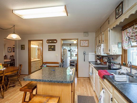 Meticulously cared for inside and out. You will love this amazing acreage. Home features an open kitchen, a main floor master bdrm, formal dining area & big rooms. Plenty of pasture fence & several great outbuildings.