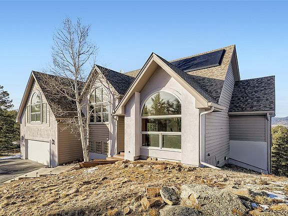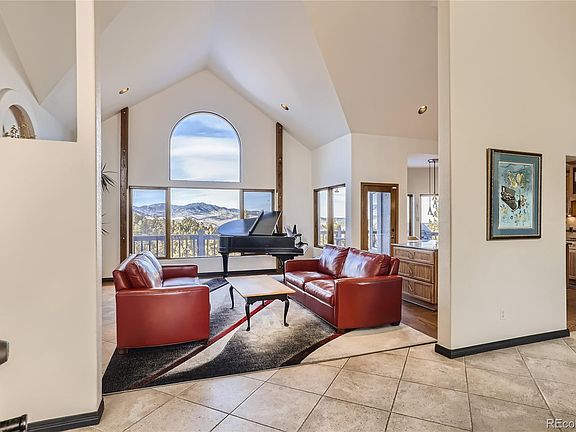 Stunning views of the snowy peaks of the Continental Divide and the front range mountains on a 4 acre lot in one of the most convenient and beautiful settings in the foothills. Less than 30 minutes from Denver and positioned to give you a head start to the world class skiing and recreation in Colorado’s high country, this is an absolutely ideal location. Enjoy the photo tour and you’ll appreciate the vaulted ceilings, open floor plan, hardwood and tile flooring throughout and the outdoor decks for entertaining or gazing at the view. The primary bedroom features those jaw dropping views without lifting your head off the pillow, and the spa bath has a steam shower, Bain Ultra massage & chromo tub and custom glass with extra thoughtful touches throughout. With the owned and included PV solar and a back-up battery system, the current owners have enjoyed lower utility bills and uninterrupted power. With extra features including an additional office retreat located off the heated garage and a natural rock wine cellar, there’s so much to love about this one. This special home is so easy to get to, but once you’re there you’ll find it hard to leave.