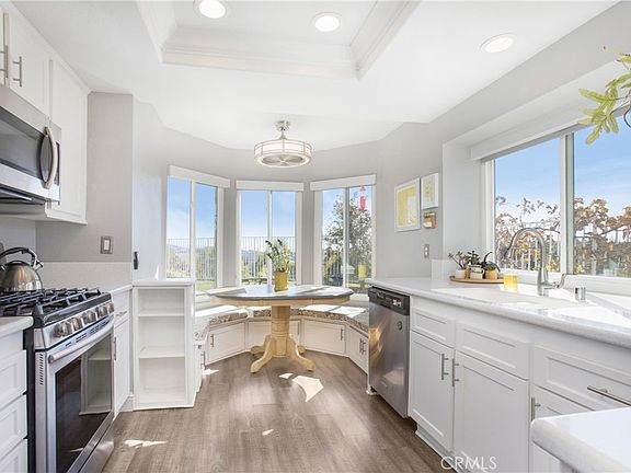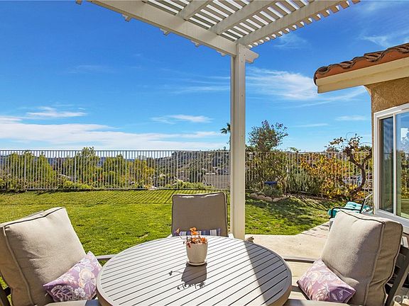 Gorgeous View Home in the highly coveted Trabuco Canyon neighborhood of Portola Hills, w/ exceptionally LOW HOA dues. Perched above canyon on quiet cul-de-sac street this 3 bedroom, 3 FULL baths, 2-car garage/2-car driveway home is a must see. Immaculate, meticulously well cared for home offers the perfect blend of comfort & luxury. First level features a bright, sunny kitchen w/ a cozy sitting nook with view, recently upgraded kitchen cabinets and recessed lighting. Dining room is open to living room featuring a pretty stacked stone fireplace, soaring ceilings and a wall of windows w/ breathtaking views of the Saddleback Mountains and surrounding hillsides. The sliding door leads to lovely private backyard, perfect for both relaxing and entertaining. Take it all in... the peaceful mountain view, the blackberry bushes, the upgraded patio covers on both side & back yards, the grape vines, the hot pink bougainvillea and likely a butterfly fluttering by or a bird chirping. This spacious, well designed home also features a convenient main floor bedroom & a full bath, perfect for an aging parent, guest or home office. A pretty wrought iron banister leads the way to the 2nd level where you'll find a welcoming second bedroom w/ mirrored closet doors and full private bath. At the opposite end of the hallway is the SPECTACULAR owners suite drenched in sunlight w/ magnificent views. A clever remodel produced a large wraparound walk in closet w/ pocket door, as well as a large ensuite bathroom. The luxurious walk in shower w/ glass barn doors, shower bench and a waterfall shower head is enviable. Newly upgraded bathroom cabinets w/ modern dual sink vanity. And you'll feel like a movie-star sitting at your lighted vanity desk w/ mirror. New ceiling fan and mood lighting w/ dimmable recessed lights and sconces. Entire home has beautiful luxury vinyl plank flooring, all upgraded baseboard, fixtures, doors and more. Incredible HOA amenities include resort style pool, jacuzzi, gym, sand volleyball, sauna, pickleball, tennis, playground and huge clubhouse w/ kitchen. Neighborhood parks Concourse & Portola have picnic gazebos, exercise stations, dog park, rock climbing/playground equipment, pickleball, basketball etc. Hiking & biking trails also nearby. Close to shopping centers, entertainment, 15 minutes to Irvine/30 minutes to beaches. Excellent schools in Saddleback Unified School District. There is Only ONE HOA with very LOW monthly dues. NO Mello-Roos & Low Tax Rate.