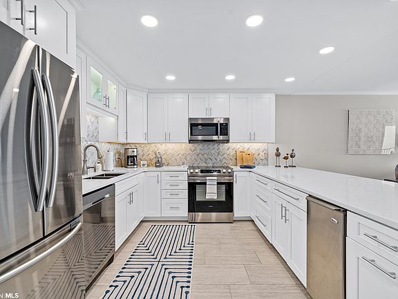 Rare opportunity to own a beautifully remodeled condo in the highly sought-after Perdido Quay community! Seller may be willing to buy down your interest rate! Perdido Quay 503 is a stunning Gulf front retreat nestled along the pristine shores of Orange Beach, Alabama. This luxurious non-rental condominium offers an unparalleled beachfront living experience, combining breathtaking views, welcoming amenities, enhanced privacy, and a prime location to create the ultimate coastal getaway. As you enter the unit, you are greeted by an elegant and spacious open-concept layout measuring 1,425 square feet, adorned with tasteful coastal décor and flooded with natural light. The floor-to-ceiling windows not only showcase the sweeping and unobstructed views of the Gulf of Mexico, but also create a seamless connection between the interior of the unit and the over-sized balcony. The condo features a high-end kitchen outfitted with stainless-steel appliances, quartz countertops, an ice maker, a herringbone tiled backsplash, white ceiling height cabinets, soft close cabinet doors and drawers, brushed nickel cabinet pulls, recessed lighting, and a bar with seating for four. The living area is designed for both relaxation and entertainment with comfortable seating arrangements, a large flat-screen TV, and unending views of the beach and The Gulf. The Gulf front master suite offers expansive views, direct balcony access, and a tiled walk-in shower with a sliding glass door. The condo also boasts views of Ole River from the guest bedroom, tile flooring throughout, a tiled walk-in shower in the guest bathroom, a large laundry room with a full-size washer/dryer, and a private storage closet on the ground floor. Perdido Quay residents and guests are able to enjoy an outdoor swimming pool, a large pool deck, a spacious covered pool patio equipped with tables and chairs, and a short boardwalk to the beach.