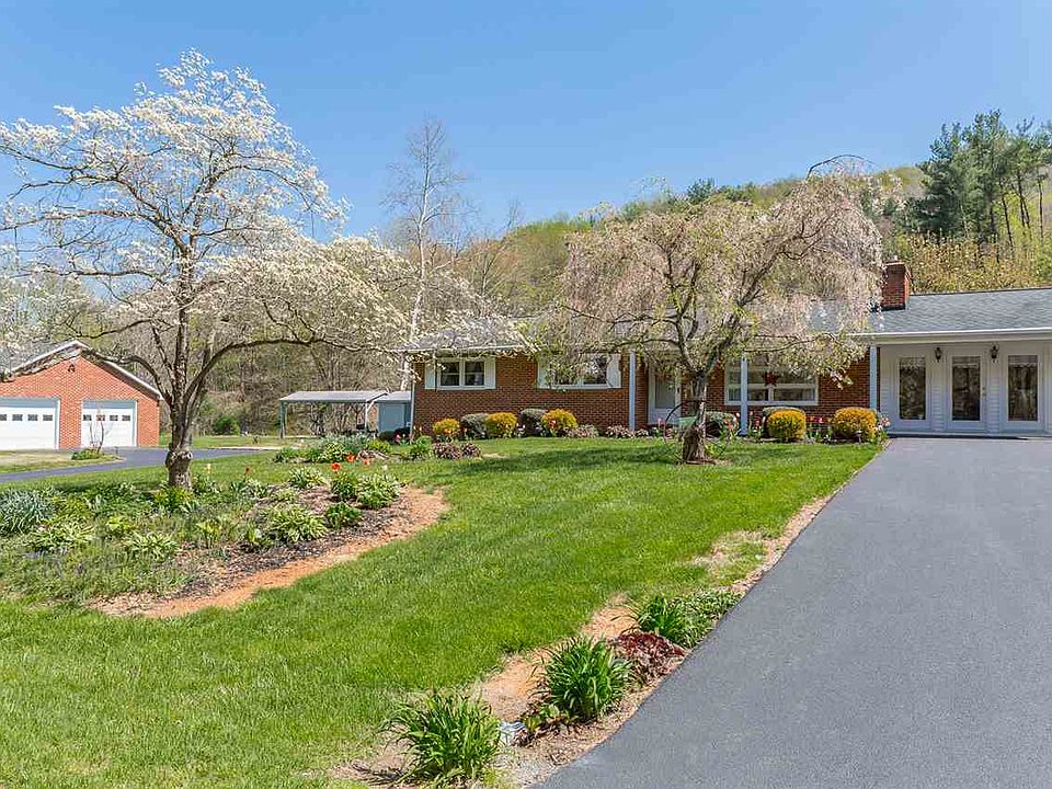 Come home and relax in your own slice of Heaven. This captivating one owner brick ranch style home sits creek side with panoramic blue ridge mountain views on 1.29 acres. Featuring a 40x30 ft. 4 car garage, this home is perfect for the hobbyist or car enthusiast. This warm and inviting 3 bedroom 2 bath home has been updated from the new roof in 2016, Generator in 2019 to kitchen and bathroom updates which include updated custom cabinets, tile back splash and solid surface counters. Relax on the landscaped rear patio and listen to the creek. Hardwood under carpet in living room. .