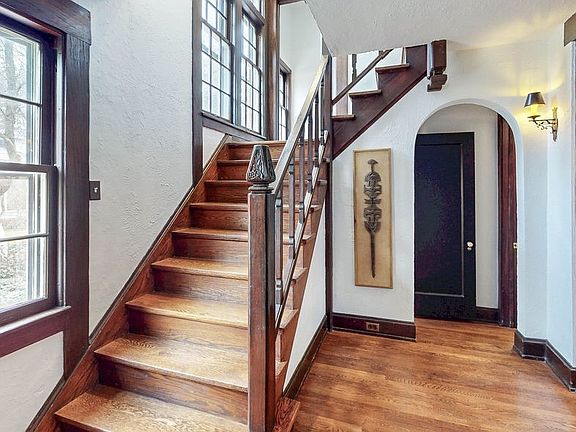 This Architectural Gem located on one of Shaker Height's first established streets has been renovated to the highest standards while preserving the original details. Designed and built by Phillip Small to reflect an English style cottage among the grand Shaker mansions of the era, this modest home abounds with charm and functionality. From the moment you step inside the foyer with original millwork, you are drawn into a spacious yet cozy living room featuring beamed ceilings, built-in bookcases and a sandstone gas fireplace. The current homeowners renovated the kitchen down to the studs, adding in cheerful cabinets, quartz counters and high end appliances. This massive project improved the flow of the home, opening the kitchen into the dining room. Step out to a screened in porch with flagstone patio overlooking spacious backyard with mature plants and perennial garden. Three spacious bedrooms on the second floor, one with a bonus room that steps out to an open air porch. The primary bedroom and ensuite features a gorgeous updated bathroom with two walk in closets, one is large enough to function as a home office. Central air, on 2nd and 3rd floor only, was installed in 2016. Third floor has an additional two bedrooms and full bathroom. Exterior improvements included custom built shutters with working hardware, a newer concrete driveway and an electric car hookup for the garage. Don't miss the staircase behind the garage that leads a storage area with endless potential! Don't miss this incredible opportunity in the soon to be "All Schools" Neighborhood of Shaker Heights!