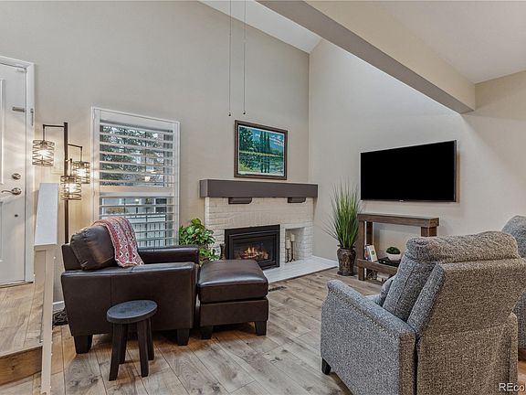 Welcome to THE BEST TOWNHOME in Littleton's South Park Neighborhood! Here is a highly desired south-facing end unit with a covered front porch & private patio. This 2 bed/2 bath has wonderful appeal, bright & vaulted with plenty of natural light and numerous updates for your comfort and enjoyment! All ready for you to move right into this cozy well-kept home! You have new interior paint throughout 2022, new wood plank laminate flooring, new carpet on the upper level, Plantation shutters, updated light fixtures & ceiling fan, new skylights, updated baths/sinks/mirrors, new security door 2021. The exterior was freshly painted in the fall of 2022 and new roof installed Sept. 2023 along with gutters, screens, 4 new skylights, and brand new garage door. Stepping inside, the main floor features a vaulted living room with gas fireplace, 2 skylights, new ceiling fan. The kitchen fitted with Granite counters & breakfast bar, Stainless appliances, painted cabinets. You also have a guest bedroom on the main with en-suite 3/4 bath, recently updated vanity/sink & mirror. Head upstairs to find a roomy loft to use as you please--reading nook, office, workout room--and the soothing Primary bedroom featuring vaulted ceilings, 2 skylights, peekaboo mountain views, large pantry & adjoining updated full bath with new vanity/sink/mirror. The finished laundry room is located in the daylight basement. You will love this community! A great central location close to everything, including the Highline Canal, Light Rail, downtown Littleton, Santa Fe/C-470, Aspen Grove, great restaurants and shopping right at your fingertips! It's quiet with friendly neighbors, walkways weaving through the neighborhood, a clubhouse, pool, tennis/pickleball courts, and summer concerts. Come take a look! Make it yours today!