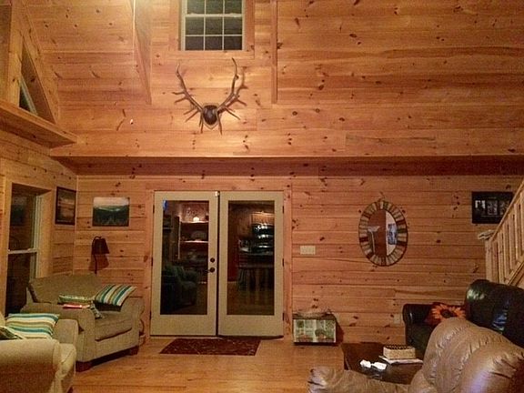 Beautiful 3 bedroom, 2 bath log home located on 4.63 acres at the top of Lakeview Acres community. Hunter & Hiker paradise...property borders state game lands! 10 minute driving distance to 2 Raystown Lake boat launches. Spacious deck with beautiful tree line view. 2 car garage built-in to basement. Each of the 3 bedrooms has 2 Queen Beds. Selling Fully furnished...This property is a MUST SEE!