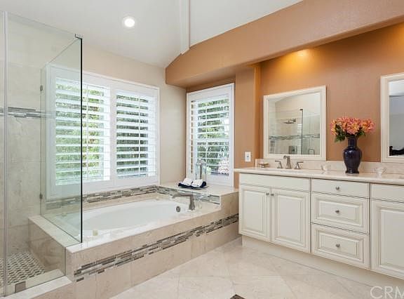 This elegant home is offered by Kelly Arshi of RE/MAX First Class at 949-455-0606. Sophisticated Elegance. Sophisticated Elegance. You will be impressed from the moment you walk into this beautiful home! Beautifully appointed and extensive attention to details. This Gorgeous home boasts new windows with custom plantation shutters. Handsome wood flooring through out. Completely turnkey and ready for you to enjoy! Four large bedrooms and three baths. Upgraded and remodeled kitchen with stainless steel appliances. Remodeled all bathrooms. Fantastic open and spacious floor plan with main floor bedroom and bath. Numerous upgrades through. Unwind and Relax in the backyard with park-like setting, including a soothing in-ground spa! No Mello Roos. Low association dues. Association offers pool, spa, club house, gym, sauna, tennis, playground, and much more. A beautiful place to call home.