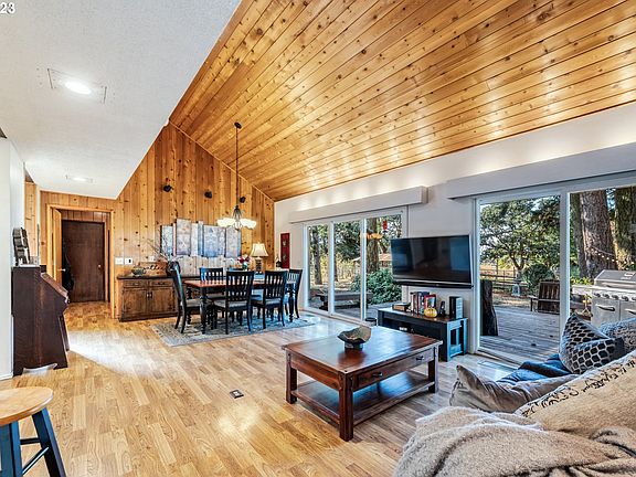 PRICE IMPROVEMENT !! Oasis in the country! Fantastic country property with pasture and valley views on a peaceful setting of 3.93 acres. Home is set back from the road to offer plenty of privacy. Main level includes primary bedroom with private bath and outside access. A second bedroom is also on the main level. 3rd bedroom is upstairs with full bathroom and large loft/office area. Family room includes built-ins and vaulted ceilings. The dining room's built in buffet and the large outside deck make this home perfect for entertaining. The 2 car garage is spacious with a workbench and attic with plenty of storage. Two separate entrances for possible dual living. Backyard includes raised garden beds, grape vines, and a chicken coop. Plenty of parking for RV/boat. Come see for yourself how incredible this property is! Close in country, only 3 mins to Junction City and 25 mins to Eugene. Text or call for an easy showing. Open House Sunday 10/29 from 12-2pm