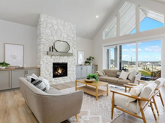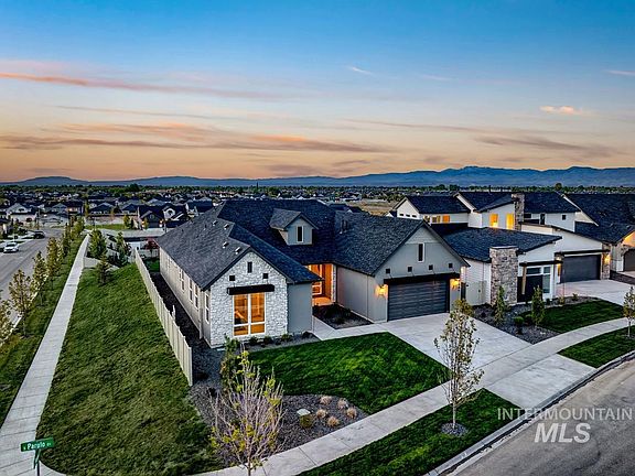 This stunning home offers elegance and breathtaking mountain views, plus it’s the last newly constructed home remaining in Sky Mesa. The Sagewood exudes refined, single-story, living with its open-concept design and luxurious features. The spacious kitchen flows seamlessly into the dining area while the great room boasts soaring vaulted ceilings with epic views thru a 16-foot sliding door to the covered back patio. The master suite features a cozy fireplace, spa-inspired ensuite, deep soaking tub, oversized shower and dual vanities. Additional bedrooms are designed with comfort and privacy, each with a private bathroom. The oversized office provides versatility as a dedicated workspace or fourth bedroom. Sky Mesa is one of the most desirable communities in South Meridian with easy access to the interstate, major healthcare centers and premier shopping/retail.
