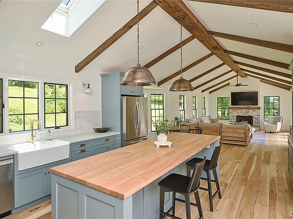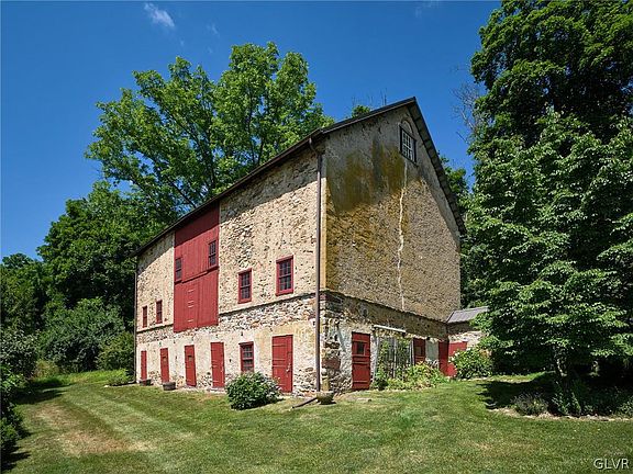 Welcome to this enchanting Bucks County stone farmhouse with sweeping lawns and parklike setting. The approach to the home is truly spectacular beginning with a gated stone entry, paved driveway, bordered with flowering trees setting the tone for the elegance within. This 4BR/4BA home sits on 20 acres and is the perfect blend of historical charm and modern luxury. Step into the heart of the home- a completely remodeled kitchen/great room with vaulted ceilings with exposed beams, flooded with natural light. Anchored by a brick fireplace the room is spacious and inviting. The brick hallways offer a seamless connection to the original sections of the house dating back to 1790. Steeped in history, the rooms feature pumpkin pine floors, walk-in fireplaces, original built-ins and moldings, and beamed ceilings offering a cozy setting for intimate dinners and gatherings. The upstairs hosts 2 spacious bedrooms and a full bath, providing a tranquil retreat. Below the kitchen, you'll find 2 additional guest rooms, each with ensuite bathrooms, all recently updated for modern comfort. There is an additional loft space that could act as a 5th bedroom or office. Outside, the property features a stunning stone bank barn, a two-car detached garage, smoke house and spring house. Multiple stone patios, and decks to enjoy year round. The backyard is a nature lover's paradise, with multiple tiered gardens, specimen plantings, partly wooded areas, perfect for nature trails and exploration.