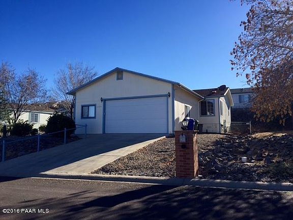 Great Value in this Wonderful Subdivision. Spacious floorplan with gas fireplace, open formal dining room, large kitchen with tiled countertops and backsplash. Snack bar area that opens to living room. Sliding doors to the backyard deck. Large Master Suite with double vanities large walk in shower. Laundry Room with lots of cabinets for storage and utility sink.Nice covered front porch with views of the Granite Dells with lots of trees to provide privacy. Newly painted 2 car garage w/storage