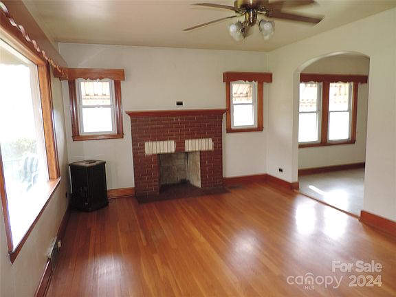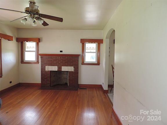 One level brick cottage conveniently located in Canton, surrounded by beautiful mountain views. This adorable home features 2 bedrooms and a full bath with tub and shower. Wood floors throughout with tile in kitchen and bathroom. Bonus room that would be a great office or den area. Kitchen area has many cabinets and also has a built in china hutch. Home has fireplace(never used by current owner) replacement vinyl windows, dining area, a covered porch on the front, Level entry. 2car detached carport, a shipping container for storage, concreted patio