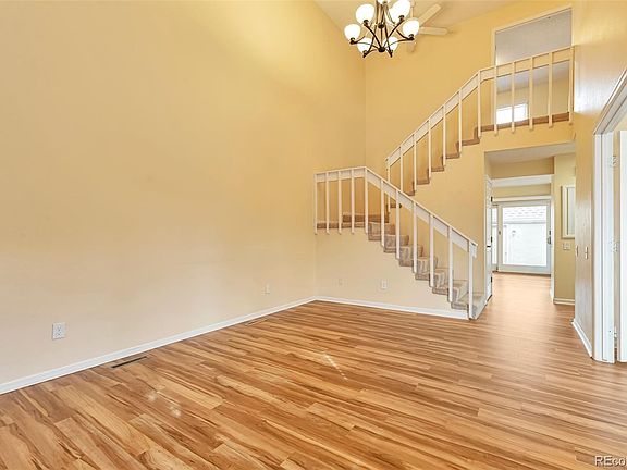 Nicely maintained Dam East Townhome with large basement and 2 car garage! Dam East Townhomes complex features clubhouse, swimming pool and tennis courts. Unit features a spacious, open floor plan with high ceilings. Built-in bookshelves. Large 3rd bedroom or den with closet on main floor. Dining area open to well appointed kitchen with appliances. Main floor half bath. Sliding door off kitchen leads to private rear yard with service door to 2 car garage. Front opens to greenspace. Primary bedroom with vanity and full bath (jack and jill) 2nd bedroom with vanity. Unfinished basement offers 814 square feet of additional living or storage space. Cherry Creek schools. Close to light rail/ bus lines, shopping, restaurants, parks and trails, Cherry Creek State Park Reservoir.