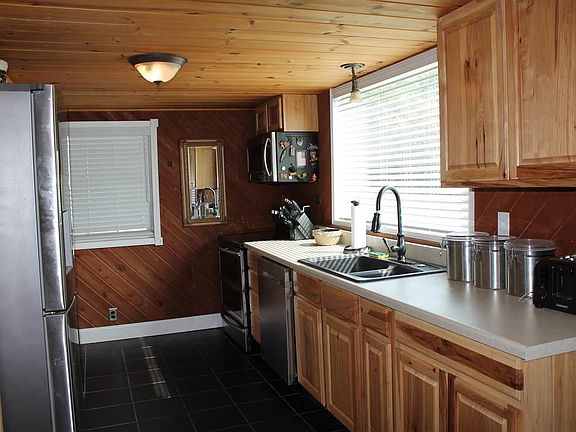 Perfect weekend getaway! Remodeled over the last year & a half. The open living room offers a high ceiling & built-ins with a TV that stays. Plenty of kitchen cabinet space & all appliances will stay. Nice sized bathroom with shower & separate soaking tub. The washer & dryer stay as well! Newer tile throughout main floor. Cedar exterior & off road parking. French doors to the tiered deck & hot tub that will stay with property. The amazing view alone makes this property a must see!