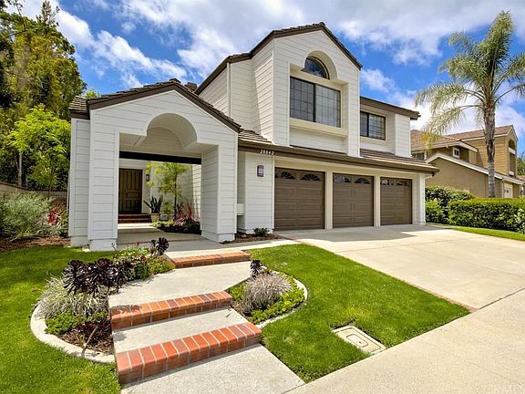 This Wonderful Canyon Crest Home is Charming from Start to Finish! Fabulous curb appeal w/ freshly painted exterior and lovely garden path leads to the double door entry. Elegant foyer opens to formal living and dining w/new carpeting, updated wood flooring, brick fireplace & French doors to the back yard. The kitchen offers bright white cabinetry, granite countertops, double oven, and breakfast nook! Adjacent family room features soaring ceilings and a gorgeous stacked stone fireplace. Upstairs, the master suite is spacious and includes a cozy corner fireplace and large balcony. The newly remodeled master bath is sublime, with gorgeous tile and glass enclosed shower, white shaker cabinets, stand-alone soaking tub, stunning marble counter tops, and chrome fixtures. Three additional bedrooms w/ ceiling fans, separated from the master by a landing, are serviced by a full bath with dual sink vanity. One bedroom is huge and could be a bonus room! The lovely backyard is just the right size with open and covered patio areas, grassy yard, and wide side yard. Additional amenities include: new baseboards, whole house fan, new windows in kitchen and nook area, refurbished master balcony, ceiling fans, mirrored closet doors, 3 car garage and so much more! Canyon Crest includes clubhouse, pools, spas, tennis courts, gym, playground, 24-hour guard gated community w/ patrol and more. Lake Mission Viejo offers beaches, fishing, boating, swimming, fireworks, & summer concerts! Welcome Home!