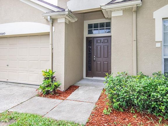 Don't miss the opportunity to purchase this 3 bedroom, 2 bathroom, 2 car garage home in Meadow Pointe. This home is ready for it's new owners and features a NEW ROOF in 2017 and NEW AC in 2019. This Pulte floorplan features vaulted ceilings and a spacious open floorplan with lots of natural light. You will immediately notice the laminate floors throughout and the large eat-in kitchen. The Kitchen features all appliances, tile floors, wood cabinets, lots of countertop space and a breakfast bar. The Master Suite is situated in the rear of the home and features a oversized walk-in closet, Garden tub, glass shower stall & duale sinks. The secondary baths are in the front of the home with the 2nd bath, both rooms give ample closet space & ceiling fans. The 2 car garage has a keypad and washer/dryer hook-ups, reclaimed water for lawn irrigation system & large yard. This home is in the heart of Wesley Chapel located close to A rated schools, Lots of shopping, restaurants, and close to both I75 and I275. Meadow Pointe has a Community pool, clubhouse, tennis & basketball courts, playground and parks for the residents to enjoy. ***The CDD Fee is included in the tax bill.