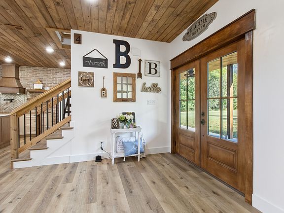 This is the Showstopper Post Frame Custom Barn Style Home you've been waiting for! Nestled on 26.01 Private Acres w/almost a half mile creek frontage of the East Fork of Yellow Creek. French Door Entry to Chalet-like features of Wood Accents, 2-Story Brick Hearth w/Electric Fireplace & Soaring Ceiling Heights. Beautiful Rustic-feel Kitchen complete w/Modern Touches features Butcher Block & Quartz Counters, Brick Accents, Deep Soft Close Drawers & Cabinets, Pot Filler & Huge Center Island w/Double Sided Storage. Antique Wash Sink & 2 Storage Closets in the Half Bath. Vintage Original Door to your Walk-in 15x7 Pantry complete w/Built-ins & Mini Fridge. Sliding Door Entry to a Real Laundry Room, a Timeless Utility Sink & Storage Area. Garage is deep enough for Boat & Includes 50 amp. In-Law Quarters on Main w/Full Bath & Giant Walk-in Closet. Secret Laundry Shoot in Upstairs Guest Bath. Huge Bonus Room. Primary Bedroom Up w/18x6 Walk-in, Tiled Shower & Soaking Tub. See to Believe.