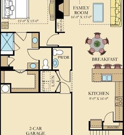 - Kitchen Features: Breakfast Bar, Pantry, View to Family Room, Stone Counters, Breakfast Room