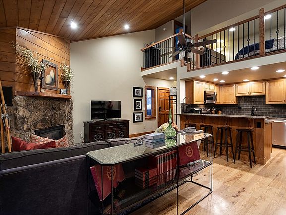Welcome to this exceptional 2 bedroom + loft, 2 bath residence in beautiful Steamboat Springs. This move-in ready retreat comes impeccably furnished with luxury linens, plush towels, premium kitchen appliances, and all the essential utensils—everything you need for your perfect mountain escape. Perched on the top floor, this bright and airy condo features soaring vaulted ceilings and an inviting open floor plan that creates a spacious, light-filled atmosphere throughout. The contemporary kitchen showcases elegant granite countertops complemented by sleek stainless steel appliances, flowing seamlessly into the living area with warm wood flooring and a cozy fireplace that serves as the heart of the home during Steamboat's snowy winters. Step outside onto either of the decks to savor your morning coffee or evening cocktail while taking in the mountain scenery.