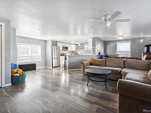 WELCOME HOME! This double wide 3 bedroom 2 bathroom home in located in the DESIRED community of Front Range MHP which features a nice front covered porch and storage shed! Walk into your UPGRADED light and bright, open concept family/dining room. Upgraded laminate flooring throughout the home! This beautiful kitchen has STAINLESS STEEL appliances, tiled backsplash, pendent light fixtures with lots of cabinets and countertop space. Primary bedroom has an attached primary bathroom. Primary bathroom has a corian countertop vanity and tiled WALK-IN Shower. Secondary and third bedrooms have the perfect sized windows letting in lots of natural light. Secondary bathroom has upgraded tiled shower! DON'T MISS OUT ON THIS HOME! CALL TODAY TO SCHEDULE A SHOWING!