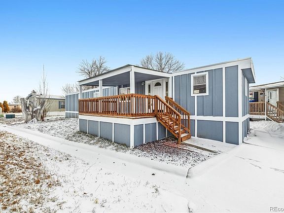 Welcome to this fully UPGRADED single wide located in the highly desired community of Front Range MHC. This single wide has been fully updated inside and out with many great features! The exterior of the home is a great first impression as the siding on the home has just been replaced and the whole home was just freshly painted! You will also find a perfect sized deck right outside the front door that would be great for patio furniture and summer living! Walk inside to be amazed by the graciously sized open floor plan with BRAND NEW flooring and FRESH paint all throughout the home! Not to mention, the whole home has tape and textured drywall and BRAND NEW windows! Immediately you will notice the beautiful eat-in kitchen this home has to offer! With beautiful backsplash, granite countertops, and all NEW stainless steel appliances that will be staying with the home, this kitchen is ready to take your breath away! Opening up to the kitchen, the family room has also been beautifully updated with NEW flooring and updated recessed canned light fixtures! This single wide houses two decently sized bedrooms and one gorgeous bathroom with a brand new vanity and shower-tub combo! Don't miss your opportunity on this UPDATED and CLEAN single wide! CALL TO SCHEDULE A SHOWING TODAY!