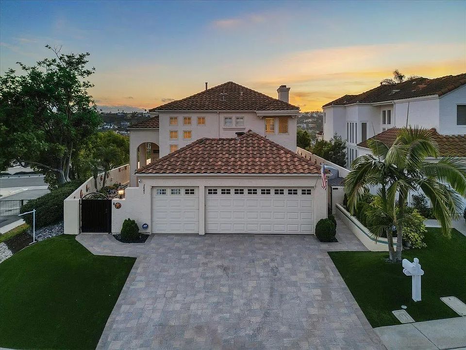 Experience luxury living in this stunning Carlsbad home nestled in the gated community of Alicante Hills. Enjoy breathtaking southwest panoramic views of Omni La Costa Resort and Championship golf course and sunset views of the Batiquitos Lagoon and Pacific Ocean. This bright and airy turnkey property on a corner lot features a luxurious primary bedroom with a spacious retreat and fireplace, offering the perfect blend of comfort and elegance for your serene Carlsbad lifestyle. Home features include granite counter tops, luxurious wood flooring throughout, plantation shutters, wet bar, sunken living room with fireplace, ample outdoor entertaining area with a built-in private jacuzzi, built in outdoor bbq kitchen, and a large balcony off of the master bedroom to enjoy sunset views.