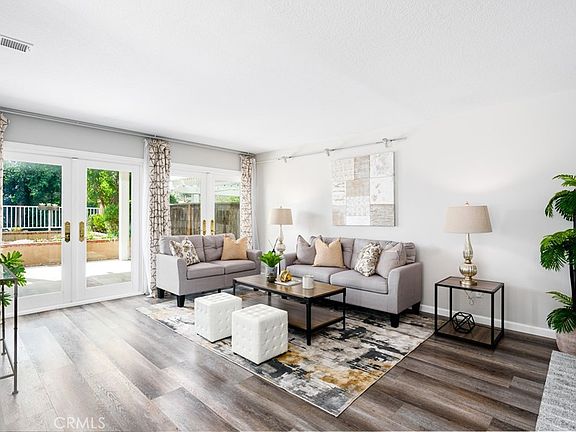 Welcome to 28852 Oakview Lane, situated in the desirable Sycamore Ridge neighborhood in the heart of Portola Hills. This spacious 4 bedroom, 3 bathroom home spanning 1806 square feet has recently undergone an impressive makeover, particularly in the kitchen with its quartz countertops, white shaker cabinets, and stainless-steel appliances. The living room is airy and bright, featuring a cozy fireplace and double glass doors that open to the backyard, complemented by newer luxury wood vinyl flooring throughout. A nearby dining room provides a seamless transition for entertaining. Downstairs, a versatile office/bedroom and full bathroom offer flexibility for various needs. Upstairs, the master bedroom boasts an ensuite bathroom with a dual sink vanity, sunken tub, and walk-in closet. Two additional bedrooms, one with an attached full bathroom, complete the upper level. The backyard offers a spacious covered patio, ideal for outdoor gatherings, while the ample yard space allows for outdoor activities or gardening. With an attached two-car garage and laundry area, wired for Level 2 EV charging, plus access to community amenities like a pool, spa, clubhouse, fitness center, and playground, this home provides both comfort and convenience. Close proximity to shopping, dining, freeways, parks, and trails makes it an ideal choice for modern living.