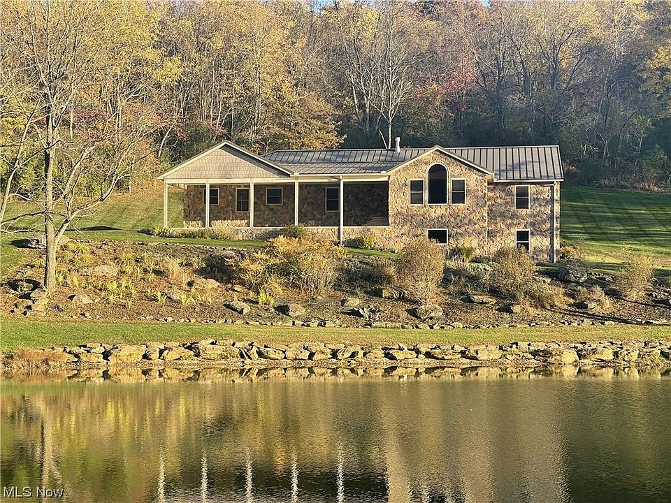 Paradise found! Tranquility and Seclusion at its finest! Tucked away on 13+/- acres (subject to final survey) located on a dead-end road in the rolling hills of Northeast Knox Co., right next door to Mohican Country. Custom built in 2007 this Native Stone, 2-BR-3BA w/a 3 car garage with in-floor radiant heat, with approximately 2700 sq. ft. finished on both levels has a large amount of unfinished storage area in the lower level which could be easily finished, should you need more bedrooms. This home exudes a sense of refined country living! You will enjoy the immense great room-open concept of the kitchen/dining/ living room with a floor to ceiling Native Stone gas fireplace. Positioned to make the most of the stellar setting, every view out the windows encapsulates the amazing scenery in every direction. Kick back on the immense front porch overlooking your 1 acre stocked pond and dock, the wooded hills which surround you, the open expanses of lawn/landscaping using native rocks, enjoy watching your horses or a few cattle in pasture areas, not to mention the wildlife who will stop in to visit. There is also Century bank barn in very good condition, and an open pavilion style building across the pond. Serviced by natural gas this home has a well thought out mechanical system and a Guardian Elite, natural gas whole house generator for total country peace of mind. If all of this isn’t enough for you, additional acreage is available if interested. Paradise found!