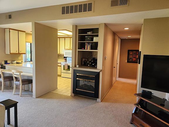 This beautiful Toltec model condo is the one you are looking for this year! Morning sun on the most desired street in Desert Princess. Steps to pool at side of property. Walk to Health and Fitness Center, Pickle Ball, Tennis, Clubhouse! Seller has added desert landscaping off the back patio. Amazing sunrises, views of Vista 1 fairway and pond with fountain. This home is spotless with nice furnishings. Updated tile flooring in the baths. Living room has an electric fireplace. Hot water and HVAC have been replaced in past 12 years. This condo is very welcoming, make it yours today! Land lease extended to 2044 and the monthly ground rent is $152.88. HOA DUES INCLUDE: 2 DVR or HD Cable boxes and service, High Speed Internet, grounds maintained to your door by HOA ground maintenance crew, outside pest control when requested, outside water, (you pay only for inside water). Gated community with 24 hour guard gate access, membership to Health and Fitness Center, Tennis, Bocce ball, Pickleball. The Desert Princess has an affordable 27-hole PGA Championship golf course, no Tee-time lotteries, no initiation fees, rated among the best in the valley by GOLF DIGEST. This quiet community is away from the noise yet minutes from everything that is in Palm Springs; restaurants, shopping, casinos, an international airport, the Tramway, Art Museum, Theaters, and the Street Fair.