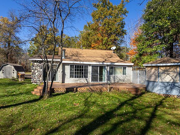 Charming 2-bedroom, 1-bathroom home nestled along the picturesque Yellow River in Danbury, WI Boasting 121 feet of serene waterfront, this property offers a tranquil retreat. The residence features a 2-car detached garage for convenience. Inside, you'll be greeted by vaulted ceilings that create an airy atmosphere. The natural wood interior exudes warmth and coziness, perfectly complimented by the wood-burning fireplace. Enjoy the soothing sounds of the river and the beauty of nature from the comfort of your home. Ideal for those seeking a harmonious blend of rustic elegance and waterfront living.