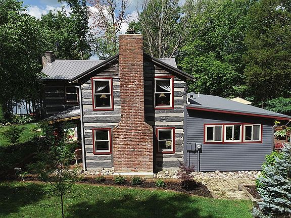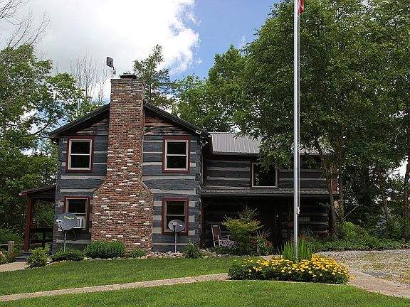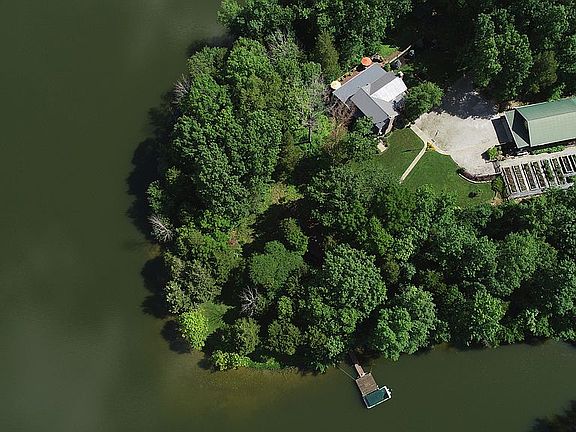 This beautiful historic lakefront home has it all. Completed total remodel in 2018, preserving the rustic charm while adding modern elegance. Great spaces for entertaining friends and family yet very private, quiet and peaceful. You will enjoy beautiful views of Beaver Lake from almost every room in the house. Private partially paved drive to the 2 plus acre grounds makes it feel remote and secluded, yet you are just 10 minutes from town. This home sits on the banks of Beaver Lake, about 8 miles from Lawrenceburg, Kentucky. The home is approximately 75' gentle slope (easy walk) from the banks of Beaver Lake and includes a private deep water boat dock very near the main channel with shoreline on 3 sides of the property. This historic log home has been remodeled to perfection, including a stunning professional gourmet kitchen with custom cabinets including panel refrigerator and dishwasher, crown molding, total Thermador appliances including steam oven, Thermador Professional oven, 6 burner gas range top and dishwasher. Beautiful exotic granite counter tops with an island perfect for entertaining. This home has radiant floor heating which is the most comfortable and energy efficient heat. This is a hybrid heating system, either using wood, electricity, or a combination to generate heat. The kitchen, dining, and living area have gray barn wood look porcelain tile. The family room with brick flooring and the upstairs has painted wood floors. There is a wood burning fireplace in the family room and one in the living room. A new septic tank was installed in 2017. Outside logs, wood decks and lakeside outdoor kitchen were stained and sealed in 2019. This home is move-in ready. This very special 2600 sq. ft. home has 2 bedrooms and 2.5 baths. Each bedroom has an en suite bathroom, one with a claw-foot tub and one with a tiled glass surround walk-in shower. Both bedrooms along with 2 walk-in closets are upstairs. Bedrooms have awesome year-round lake views. The kitchen and dining area have large windows that take in the natural light and also sliding glass doors that open onto a 60' X 12' deck that is perfect for enjoying the sights and sounds of nature. Attached to the kitchen there is a 225 sq. ft. screened in porch that is also accessible from the deck, which is great for enjoying the sights and the sounds of the birds in the morning and enjoying the beautiful sunsets in the evening. Walk out the front door and down some steps closer to the lake there is an entertainment area which includes a deck with built in benches and picnic tables, the small indoor/outdoor cooking area attached to the lakeside deck, and a fire pit. This is an unbelievable place for entertaining your friends and family who can come by car or by boat. If you enjoy wildlife, nature, peace and quiet, fishing, kayaking, boating, paddle boarding, you will be happy here. There is a 30' X 40' 2-car detached garage with extra space for storage or for your woodworking or other hobbies. In the back of the garage is an additional room that we are using for a home gym. There is a very nice fenced garden area that includes an herb garden, planting area, sink and very small greenhouse, and outdoor shower. The grounds are landscaped beautifully with dogwoods, daffodils, tulips, hydrangeas and other perennials, trees and flowers, raspberries, and fruit trees. All power lines are underground. See video: https://youtu.be/u_M3zaQ93XU.