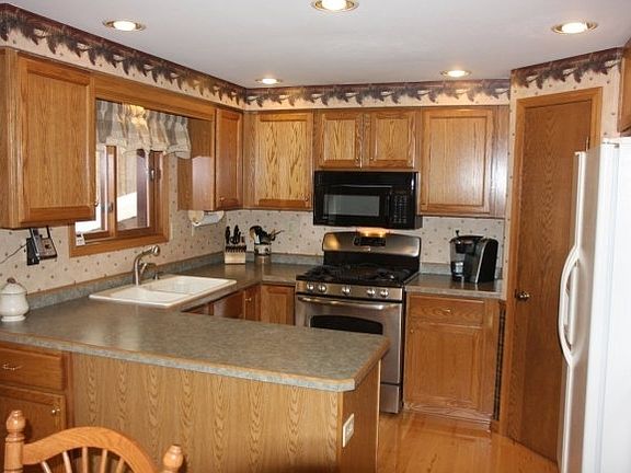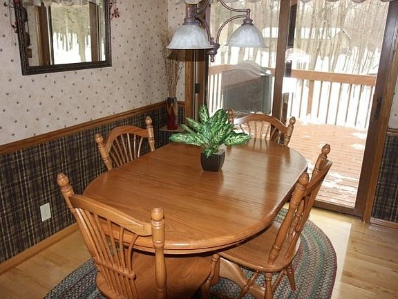 Country bi-level home featuring attractive kitchen with oak cabinetry, dining area leading to a back yard deck, lower level family room with Dover gas stove, beautiful hard maple flooring & many updates such as the furnace and hot water heater. Outside is a storage dream, a Northland 36 by 48 storage building with cement floor, professional landscaping, & blacktop drive. This is a very appealing & well maintained home located across from Crescent Lake in a quiet neighborhood.