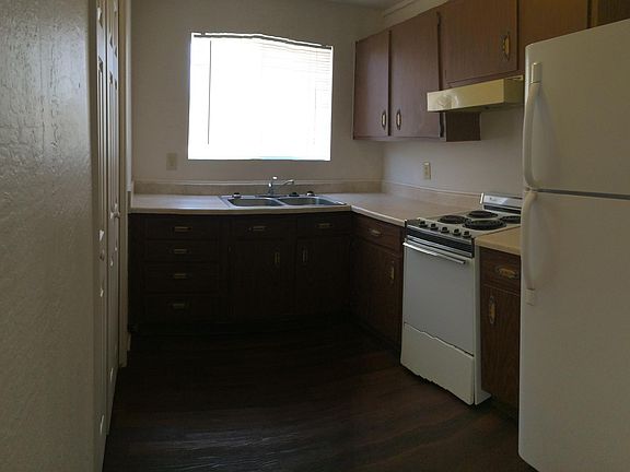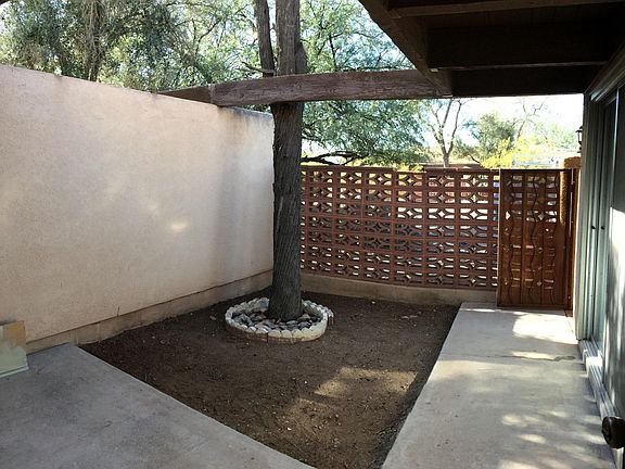 Beautiful Remodeled 1 bedroom, 1 bath townhouse. Approximately 580 sq.ft. This townhouse has a separate kitchen with a large pantry. High quality new wood laminate flooring and remodeled bathroom. Spacious rooms and cool A/C . Bedroom has a large closet and opens onto the private walled-in patio yard. New laundry facilities on site. Beautiful property with desert vegetation, and plenty of parking. Great central location. Located on the Park Avenue bike path into the University of Arizona. Close to shopping and minutes from the University area. 1 year