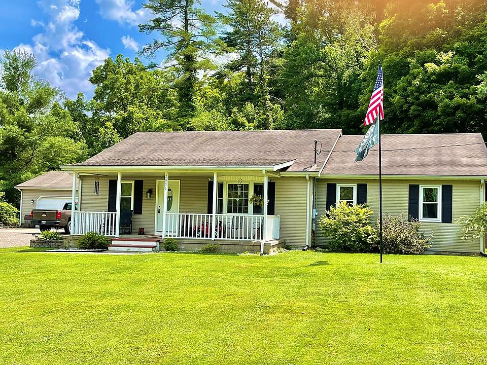 This charming home sits on a peaceful 2.32 acre lot on a quiet, no outlet road. One level living featuring an open floor plan and a sprawling owners' retreat. Tastefully decorated and offers a cozy. comfortable feeling. French doors lead to a back deck and fenced backyard and beyond is a wooded area. Plenty of storage including a room inside the spacious garage and a cellar area houses the mechanics of the home. Only 1.5 miles to the Great Seal Park and a quick drive to 23 or to Chillicothe stores.