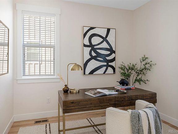 Ideally situated in Indian Peaks South, this exquisite home offers a coveted location facing the neighborhood park and just moments from the community pool. A welcoming covered front porch sets the tone for the warm and inviting interiors, where freshly refinished wood floors grace the main level and new carpeting and paint enhance the home’s pristine appeal. The stylish kitchen boasts an island, pantry and stainless steel appliances including a new bespoke refrigerator. Large sliding doors lead to a serene back patio. An office w/ french doors rounds out the thoughtfully laid out main level. Upstairs, the primary suite w/ vaulted ceilings + walk-in closet is complemented by two additional bedrooms, a hall bath and laundry closet. A fully finished basement with 10-foot ceilings offers a spacious rec area, guest bedroom and a full bath, while an under-stair closet + utility room offer ample storage. The attached two-car garage connects to a functional mudroom with a coat closet and access to a secondary outdoor space with low-maintenance AstroTurf. The home is energy star certified with owned solar panels. This exceptional residence provides proximity to downtown Louisville, Waneka Lake Park and downtown Lafayette.