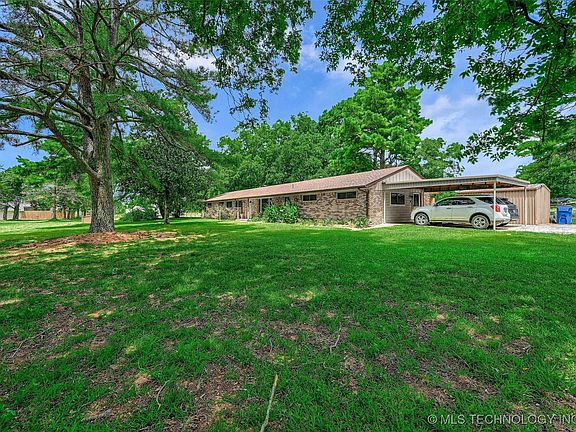 Small acreage just out side the city limits of Durant. All the perks of country living just outside the convenience of the city! Truly the best of both worlds. Along with the small acreage you'll find an abundance of square footage, just as you would expect to see in a ranch-style home. Within the last year this home has had a new roof added, new gutters, new granite countertops and tile backsplash! The master bath has been updated with a new tub surround, tile, and paint. There is also a super large bonus room as you enter from the attached carport! The yard has a 3-zone water sprinkler that runs off a water well (the house has rural water), there is a large storm cellar, and a pergola with a jacuzzi! The storage building also have electricity already installed inside.