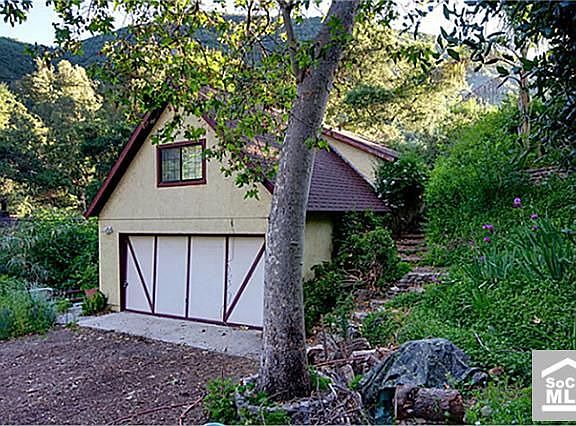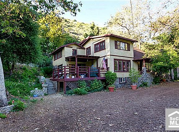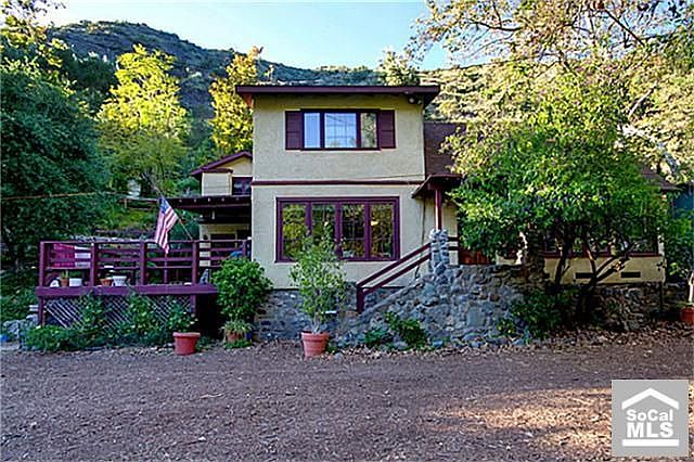 Located in a private setting on approx. 1/2 acre at the end of the road, this creek-side home has been updated throughout the years. Antique entry door opens to living room with dramatic vaulted wooden ceiling & romantic river rock fireplace. Large kitchen with separate breakfast room. Large inside laundry room with pantry. Downstairs bedroom could be formal dining room. Both upstairs bedrooms open to office/library room. Terraced grounds with paths & views. Huge double deep garage can have three cars +toys. Above garage is huge workshop/storage room. Situated near the Cleveland Nat'l Forest with miles of hiking and biking trails. Neighborhood park and daycare facility. Distinguished Chapman Hills Elem School and Distinguished Santiago Middle School. This house has so much charm.