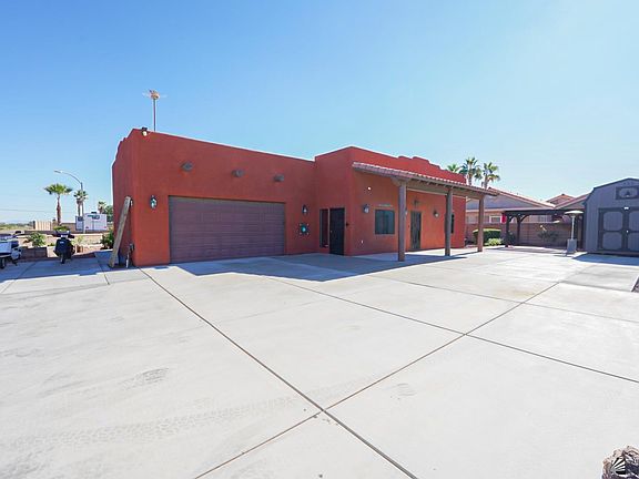 This Beautiful corner-lot home in the desirable Links at Coyote Wash subdivision offers 2 large bedrooms, 2 tiled baths, and 1,440 sq ft of comfortable living space on an 8,300 sq ft lot with many fruit trees. Home Built in 2015. The home features vaulted ceilings, tile flooring, and a kitchen with a breakfast bar, refrigerator, microwave, dishwasher, electric stove, reverse osmosis system, and dryer. All goes with the sale of the house. The primary bedroom includes wall-to-wall carpet and a walk-in closet. Additional features include dual-pane windows, skylights, an automatic sprinkler/bubler system, a shed, and a security system. Enjoy central heating and refrigeration, city sewer connection, large attached 2-car garage, plus lots of RV access and RV hook-ups—ideal for extra parking or travel convenience.