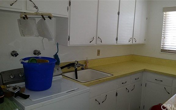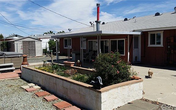 This 2 bedroom, 2 bathroom 1460 square foot home with a two car garage and a workshop is being sold "As Is". Home is in excellent condition, just in need of some cleaning, paint and flooring. There are newer vinyl windows, newer heating & air conditioning, newer water heater and there is additional insulation in the attic. Jacuzzi spa and storage sheds in rear yard as well as an aluminum patio cover. Great price for this peaceful 55+ neighborhood.
